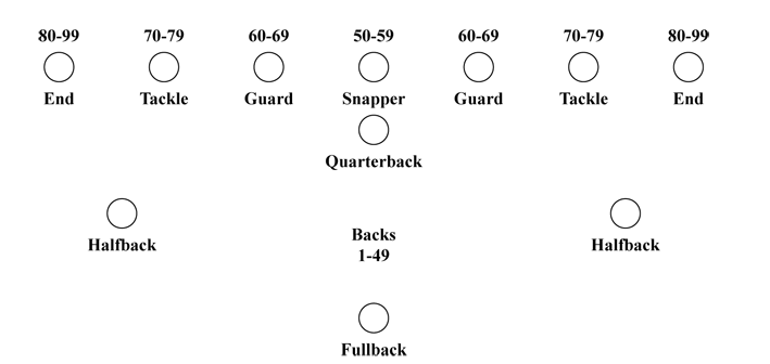 2. At the snap, at least seven men are on the offensive scrimmage line, with not less than five numbered 50-79 (Rules 2-21-2, 2-27-4 and 7-1-3-b-1) (Exception: Rule 1-4-2-b). (A.R. 1-4-2:I-V)